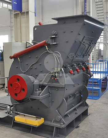 歐式粗粉磨主要由機殼、轉(zhuǎn)子、承擊鐵和篦條等部件組成。 主機通過電機、三角皮帶帶動主軸,從而使轉(zhuǎn)子旋轉(zhuǎn),錘頭受到旋轉(zhuǎn)時所產(chǎn)生的離心力向四周伸開,大塊物料從進料口進入破碎腔之后,便被高速運動的錘子擊碎。破碎合格的物料則由下部有縫隙的蓖條排出,不合格的則留在破碎腔內(nèi),被錘子和承擊鐵塊反復作用,直至能夠合格排出。為避免堵塞,被粉碎物料的含水量一般不超過5%。