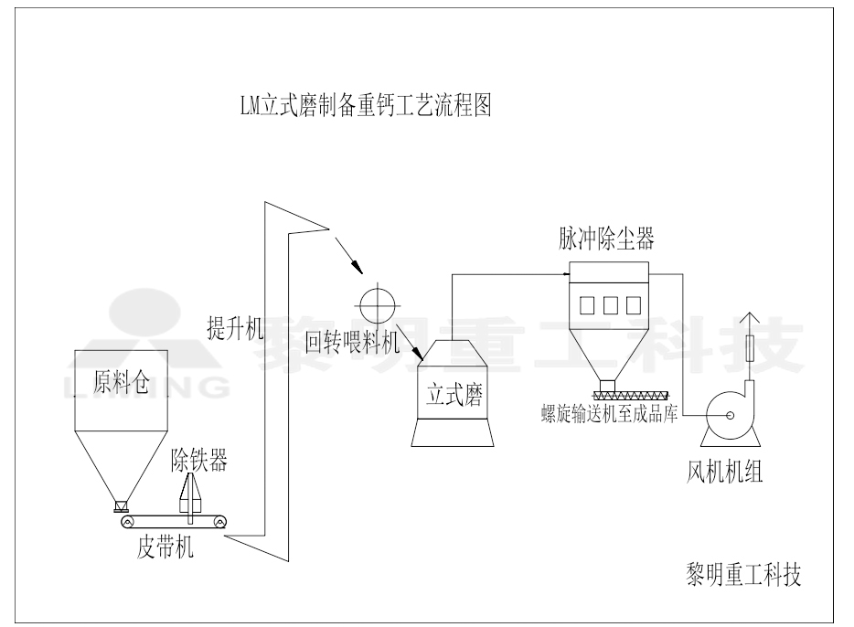 黎明重工立式磨系統(tǒng)為開路系統(tǒng),是結(jié)合近年來快速發(fā)展的磨粉機(jī)技術(shù)與中國的工況條件而開發(fā)設(shè)計(jì)的一款大型化、工業(yè)化制粉設(shè)備,尤其適用于規(guī)模化的碳酸鈣粉碎加工,其自動(dòng)程度高、生產(chǎn)成本低、效率高,一次成品細(xì)度d97=200~38um,單機(jī)生產(chǎn)能力依機(jī)型不同在20~100T/H,其工藝流程圖看圖.