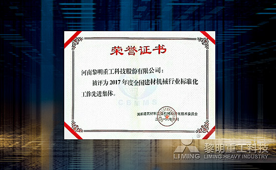 黎明重工榮獲2017年度全國建材機(jī)械行業(yè)標(biāo)準(zhǔn)化工作集體