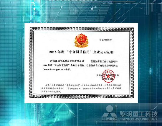 近日,河南省工商行政管理局對(duì)2016年度“守合同重信用企業(yè)”進(jìn)行公示,黎明重工憑借在經(jīng)營(yíng)、管理、納稅等方面的表現(xiàn)力和良好的企業(yè)影響力,獲此殊榮。