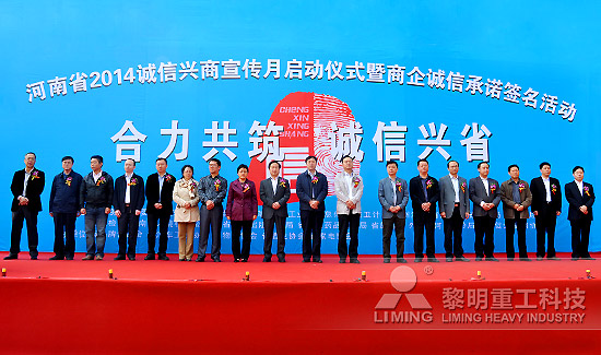 “誠(chéng)信興商宣傳月”活動(dòng)由河南省商務(wù)廳、中共河南省委宣傳部、河南省發(fā)改委等18個(gè)廳局聯(lián)合主辦,今年已是第10個(gè)年頭。該活動(dòng)旨在倡導(dǎo)信用理念,構(gòu)建誠(chéng)實(shí)守信的社會(huì)信用環(huán)境,樹立“合力共筑,誠(chéng)信興省”的社會(huì)風(fēng)氣。黎明重工作為2013年河南省“十大誠(chéng)信經(jīng)營(yíng)典范單位”及“河南質(zhì)量誠(chéng)信AAA級(jí)品牌企業(yè)”,秉承高質(zhì)量、重誠(chéng)信的經(jīng)營(yíng)理念和企業(yè)道德,推進(jìn)社會(huì)誠(chéng)信體系建設(shè)工作,責(zé)無(wú)旁貸。